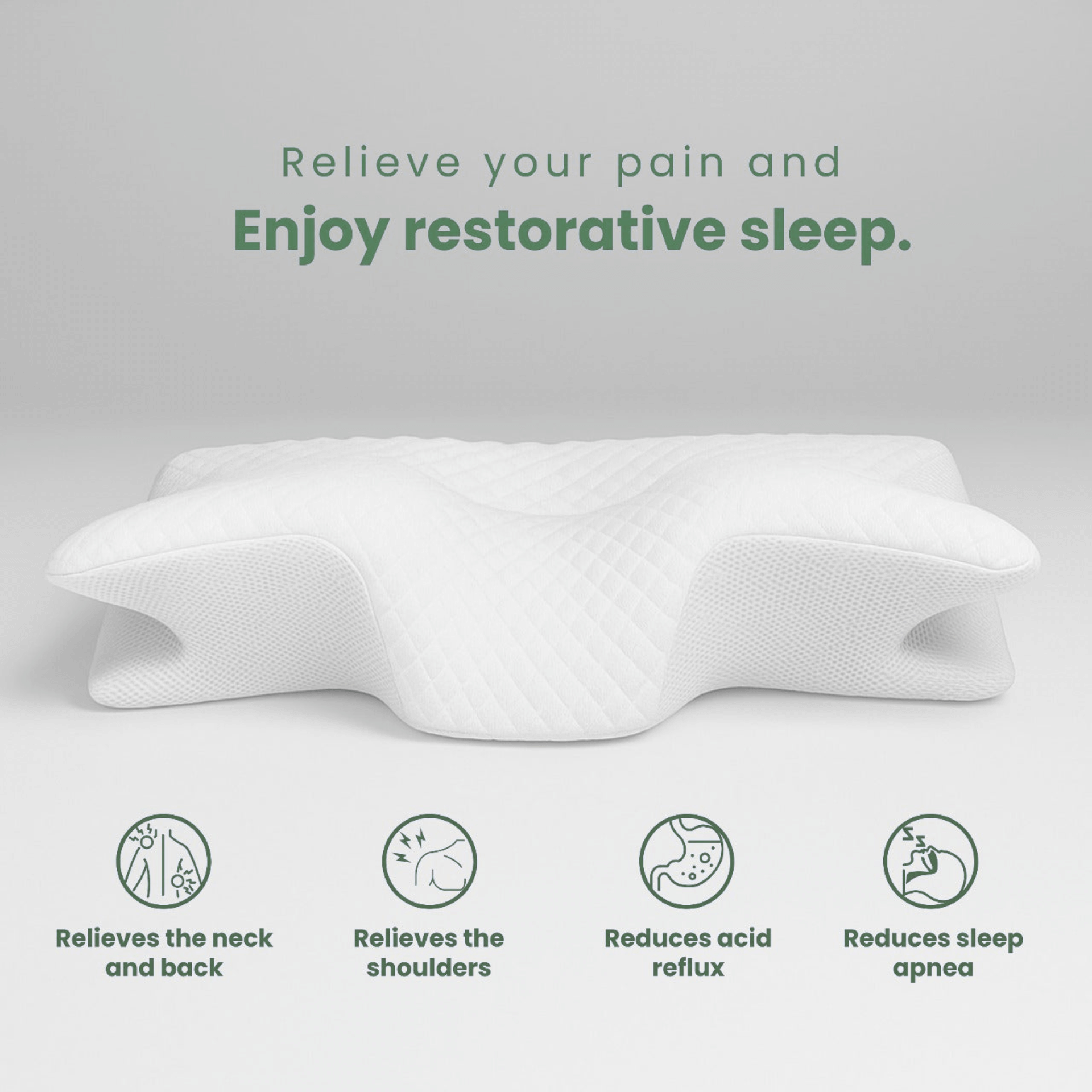 Meet the SnuzTech® Butterfly Relief Pillow — a specially designed cervical pillow that blends soft, premium materials with an ergonomic shape. Its unique design cradles your neck, relieves pressure, and encourages deep, restorative sleep every night.
